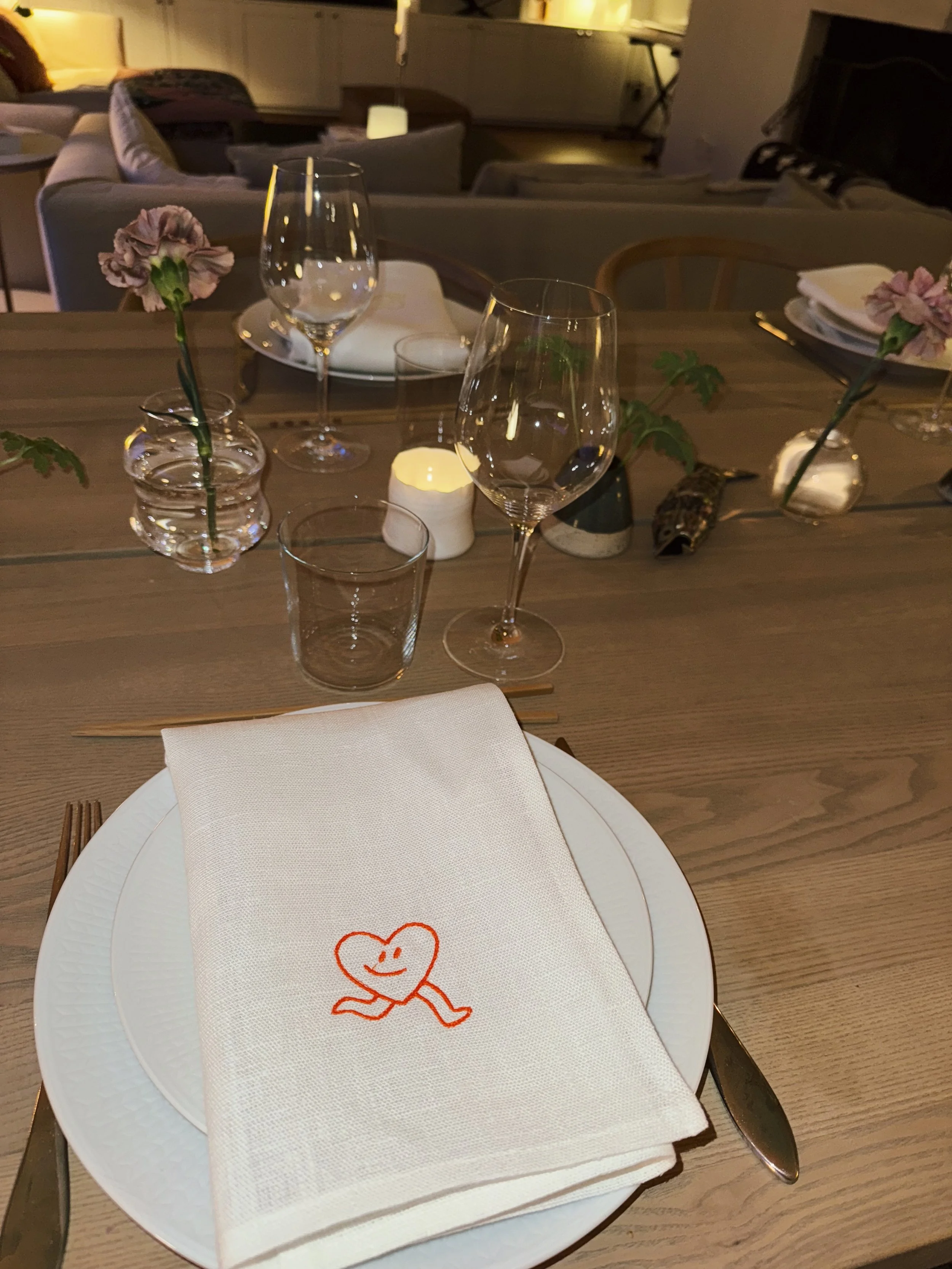 Vi skapar personligt broderade linneservetter – perfekta för att piffa till dukningen eller ge bort som en unik gåva.