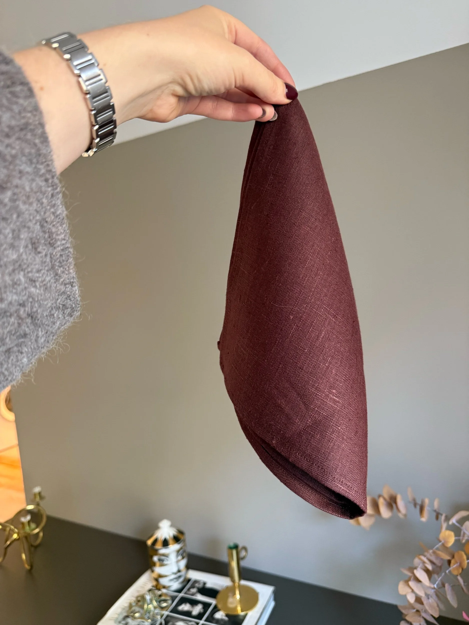 En djupt burgundy nyans som ger dukningen ett sofistikerat och varmt uttryck. Den här vinröda linneservetten passar lika bra till julens middagar som till säsongens festliga tillställningar. En tidlös färg som tillför både karaktär och elegans till bordet.
